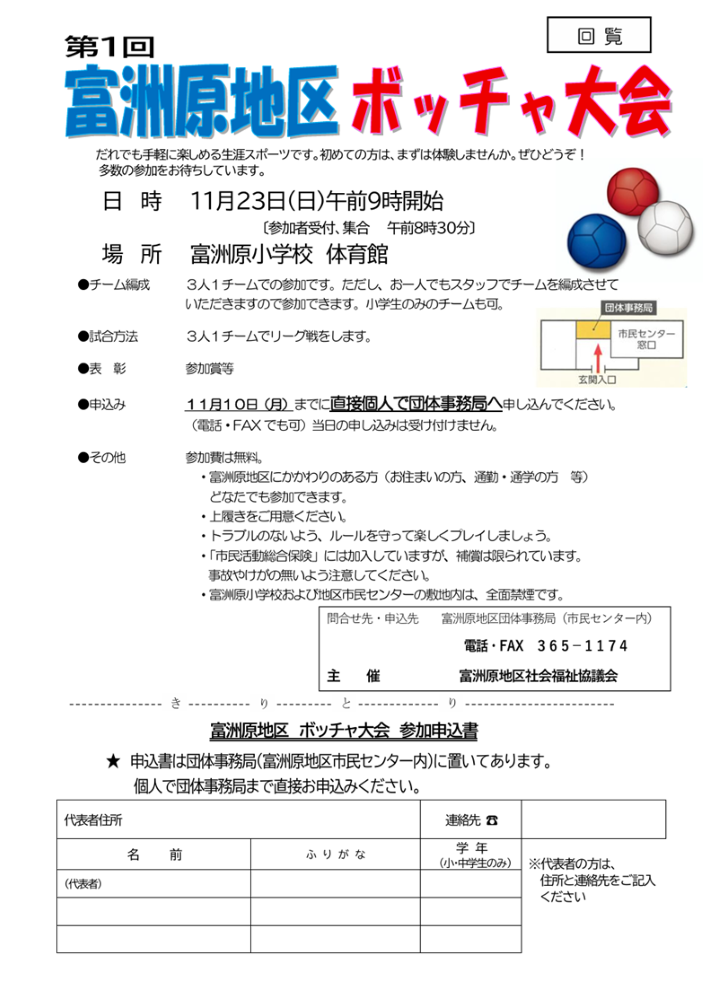 第1回富洲原地区ボッチャ大会のお知らせ