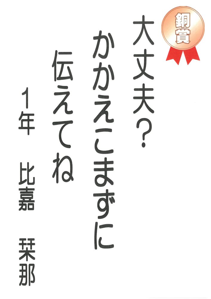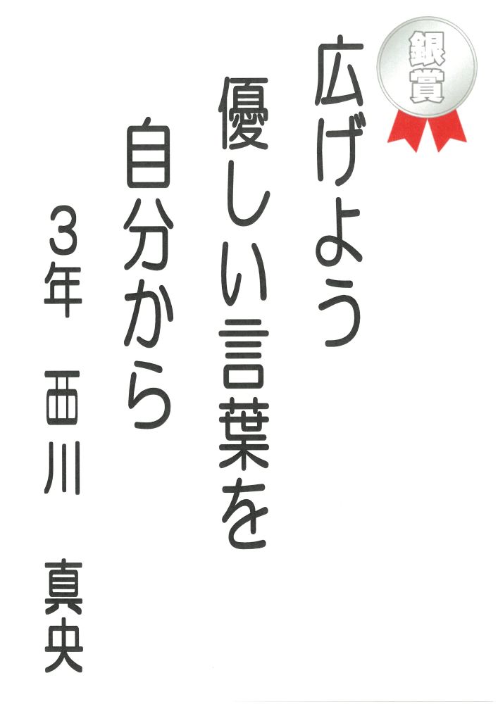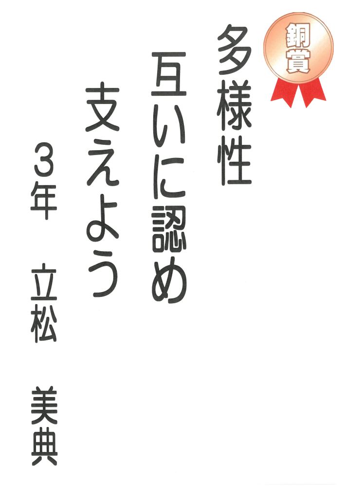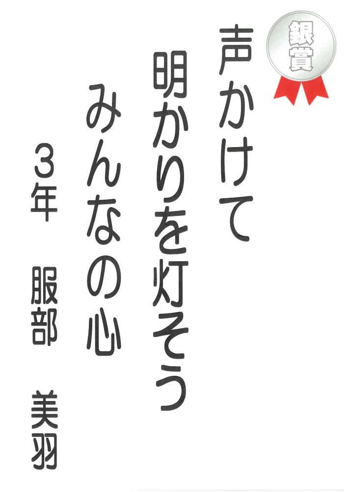 富洲原中学校の皆さんにご応募いただいた中から、下記の方々の作品が選ばれました。<富洲原地区人権教育推進協議会>