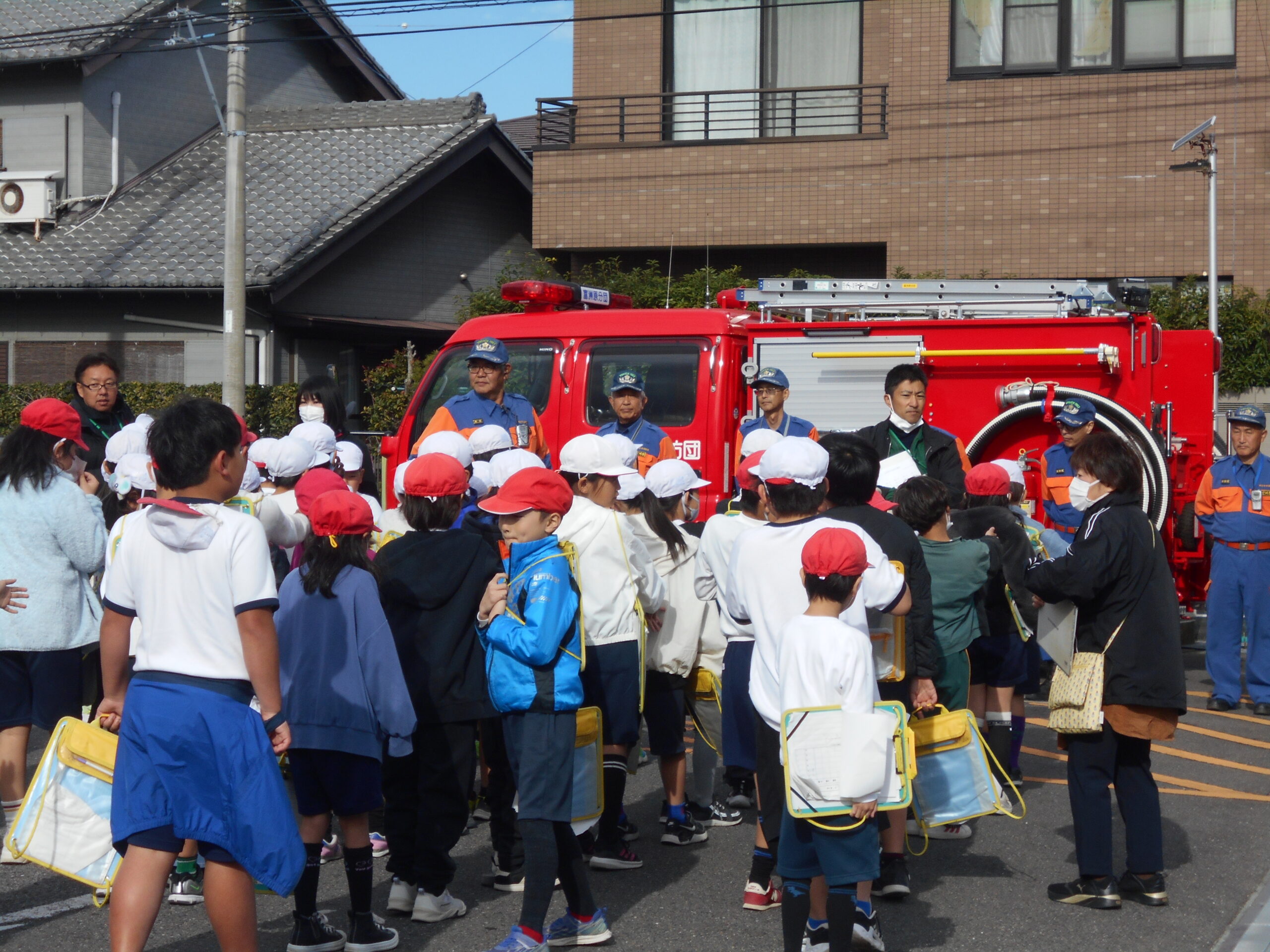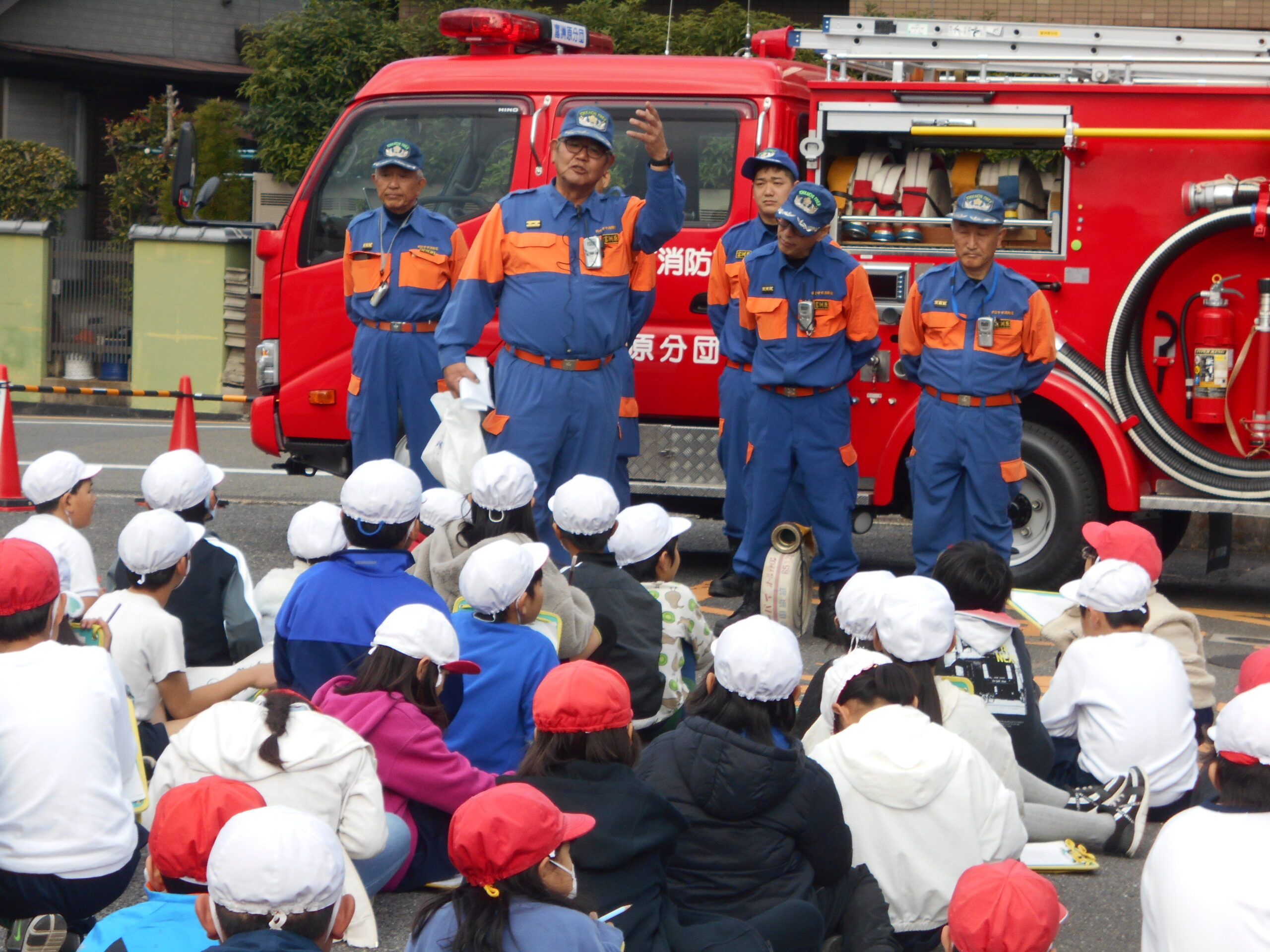 他には、防火衣の着用や消防車の説明及び消防分団詰め所の見学をし、防災について勉強しました。