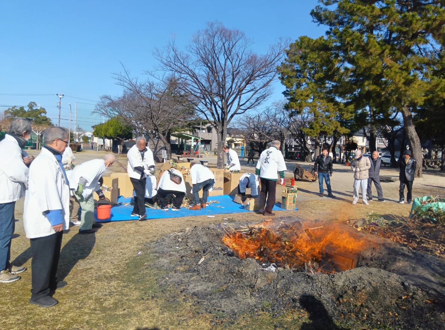 1月10日に天カ須賀地区、1月11日に富田一色地区と松原地区で、「どんど」が開催されました。
