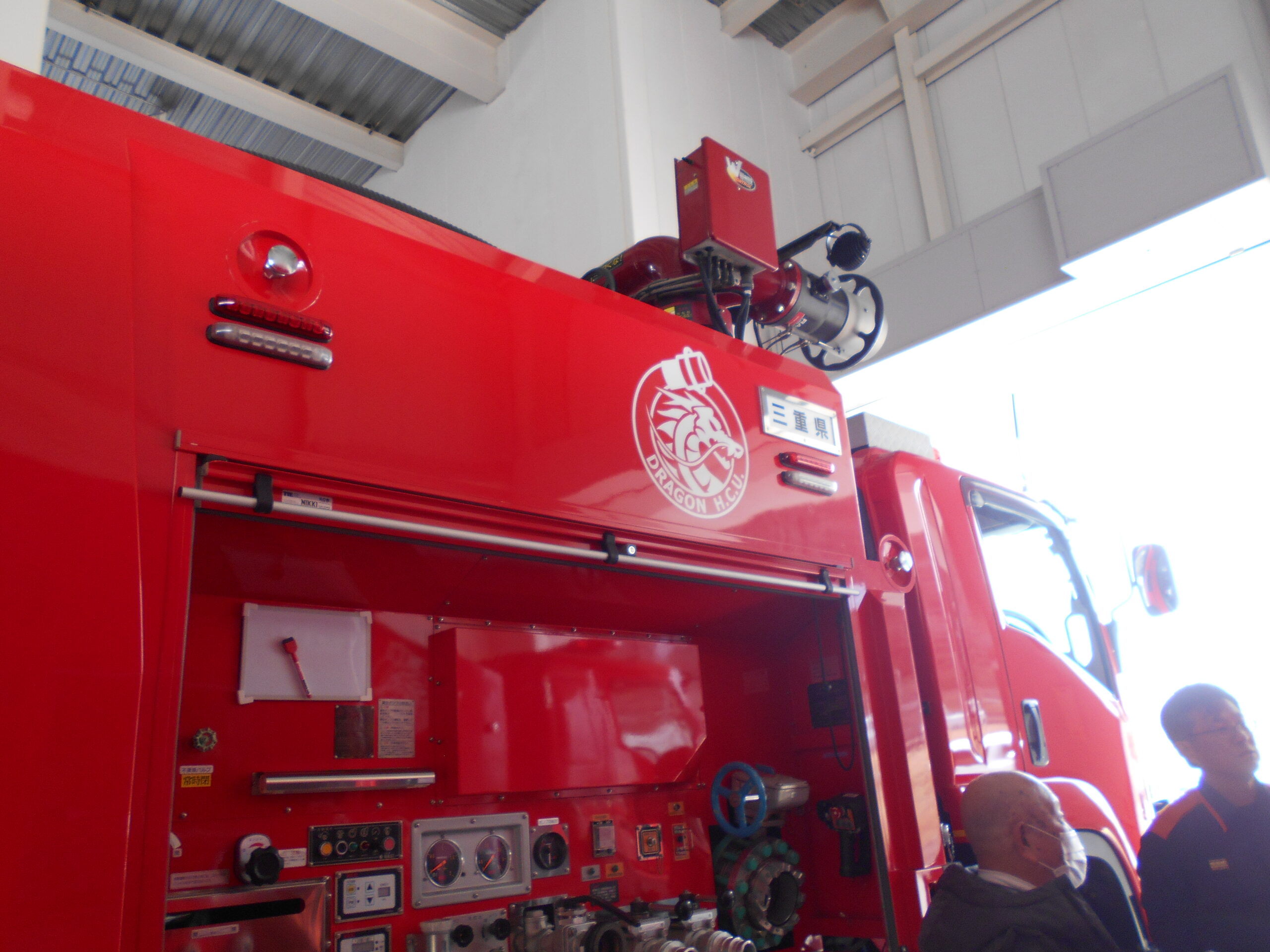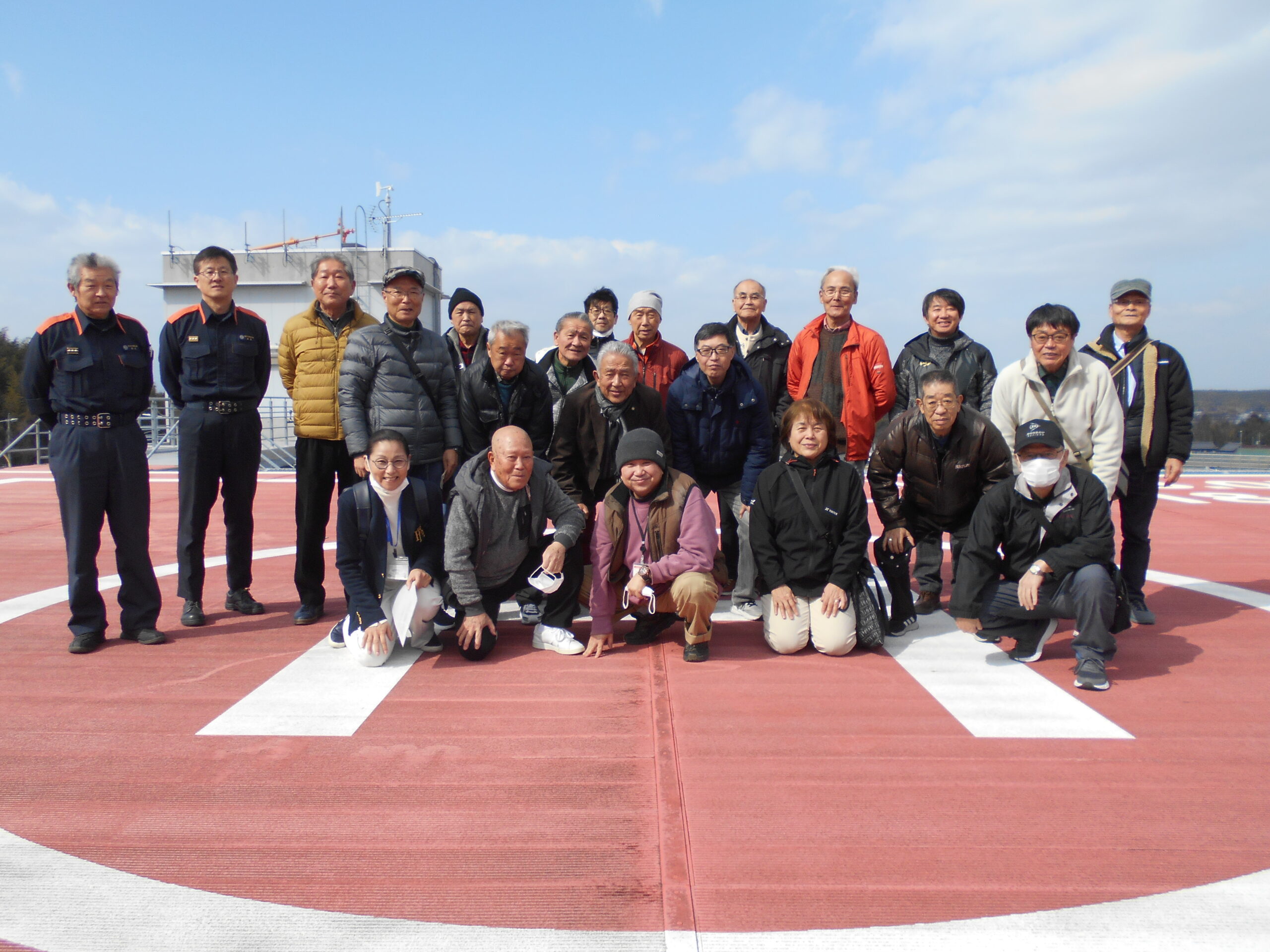 北部拠点防災倉庫(北消防署北部分署)では北部分署の方による倉庫の説明の他、ヘリポートと大容量送水ポンプ車、大型放水砲搭載ホース延長車を見学しました。