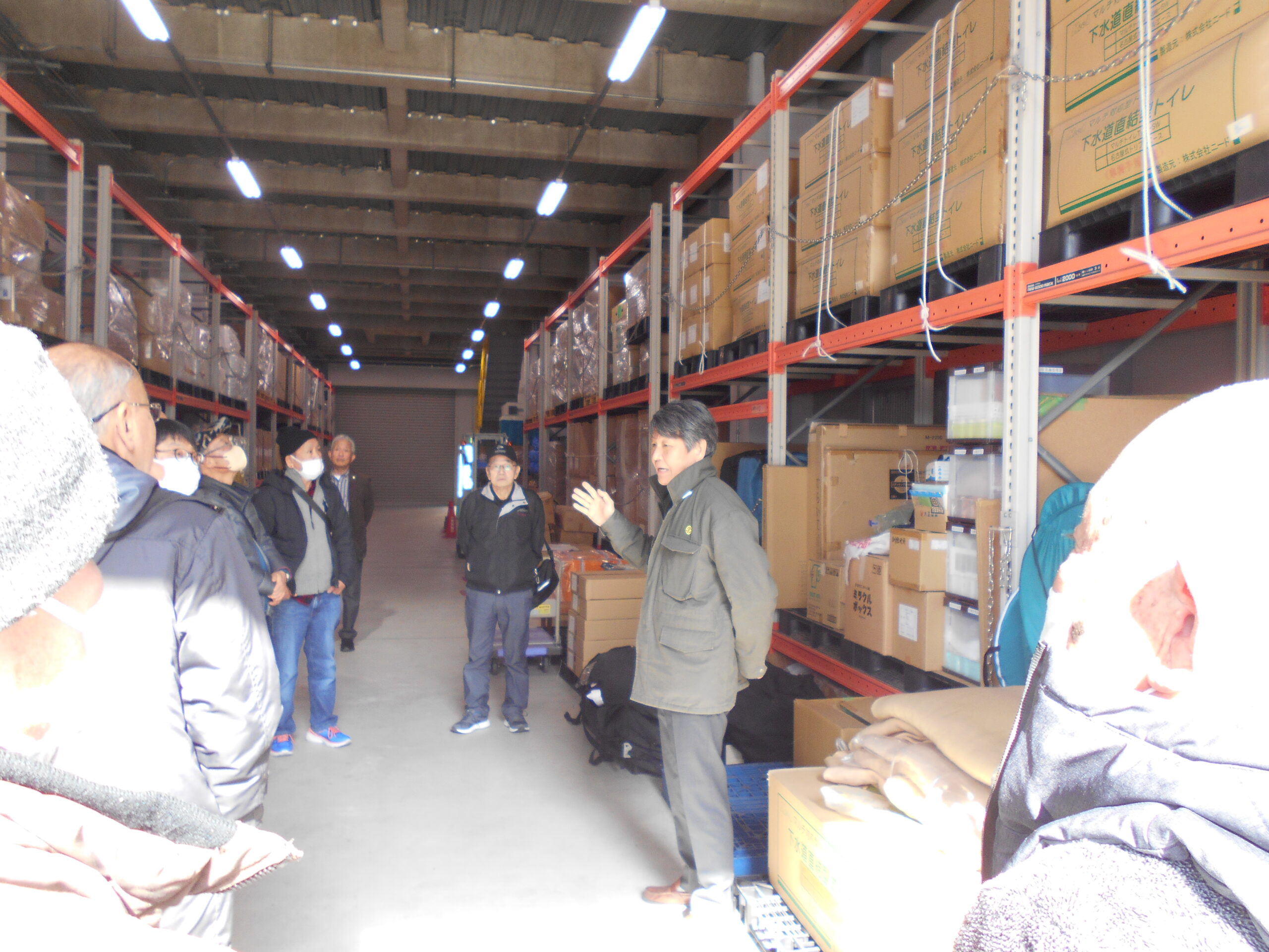 2月13日 金曜日に視察研修に行きました。今回は四日市市内の防災倉庫(三重県広域防災拠点「北勢拠点」・北部拠点防災倉庫「北消防署北部分署」・安島防災倉庫・南部拠点防災倉庫)と防災教育センターに総勢20名で巡りました。